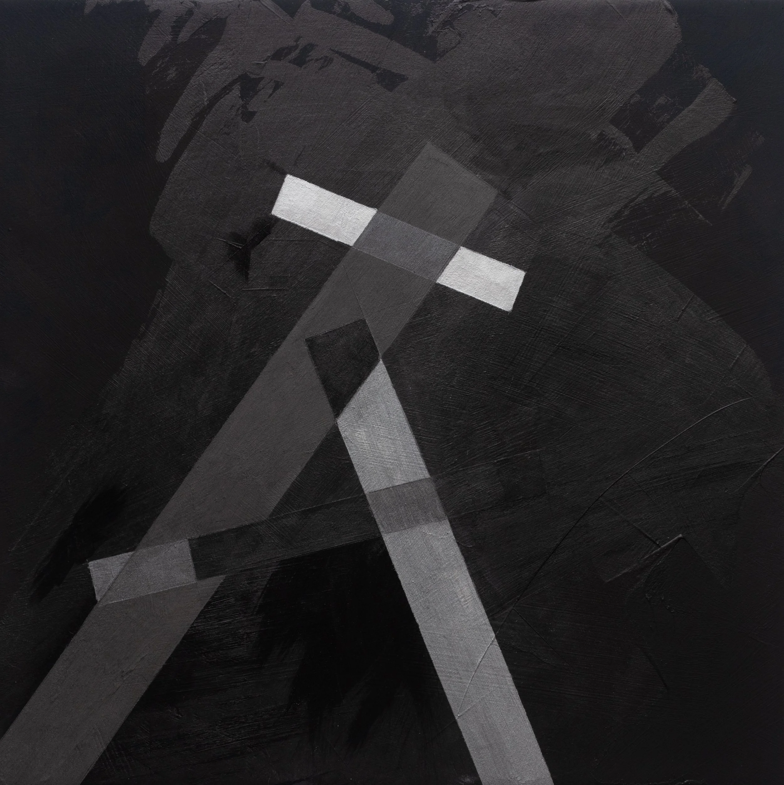 The Graphite series (2021) explores the creation of spatial perception with an extremely limited pallet of carbon black, metallic silver and graphite
