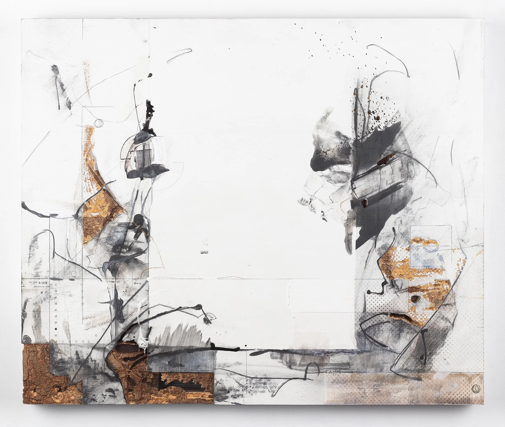 Rooted in gestural abstraction, these works invite viewers to engage with multi-perspectival ambiguity. The 'Sentience' series begins as gestural floor drawings, consciously created without intention. The 'Presence' series evolves these drawings through collaboration with a 3D digital cutting machine, creating deeply indeterminate artworks.
